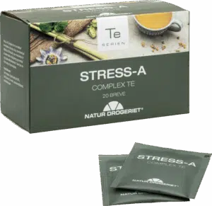 Der findes et urtepræparat, som er lavet specielt med henblik på at hjælpe de mange mennesker, der dagligt plages af stress: Stress-A Complex. Du kan købe det enten i kapsler og til te. Begge produkter indeholder urter, som har en velgørende, afstressende virkning på et overbelastet nervesystem. Urterne er udvalgt og sammensat i et indbyrdes afbalanceret forhold, der sikrer en effektiv afstressende virkning uden negative bivirkninger eller risiko for afhængighed. Stress-A Complex kan uden problemer anvendes sammen med anden medicin, af gravide og ammende, samt af lidt større børn.